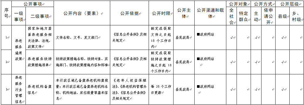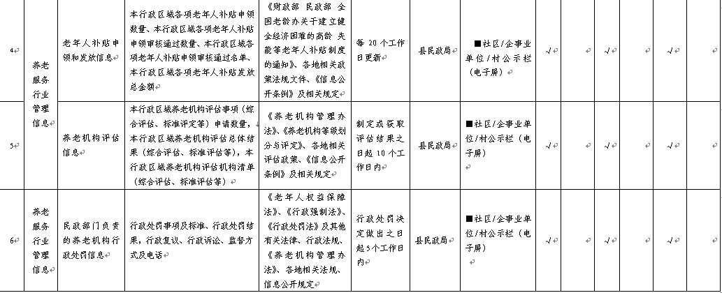養(yǎng)老服務領域基層政務公開標準目錄